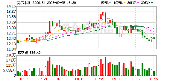 证券时报·数据宝统计显示,爱尔眼科今日收盘价为12.39元,下跌0.72%,日换手率为0.71%,成交额为6.97亿元,全天主力资金净流出6824.91万元,近5日该股累计下跌1.59%,近5日资金合计净流出3.76亿元。